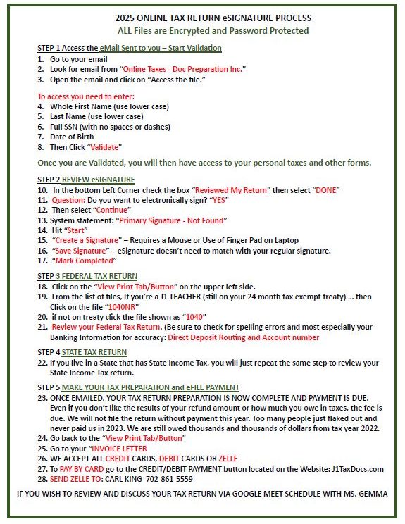 TAX RETURN REVIEW, eSIGN & PAYMENT PROCESS
